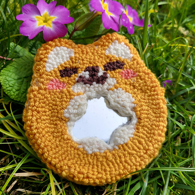Miroir porte clé fait à la main en punch needle.