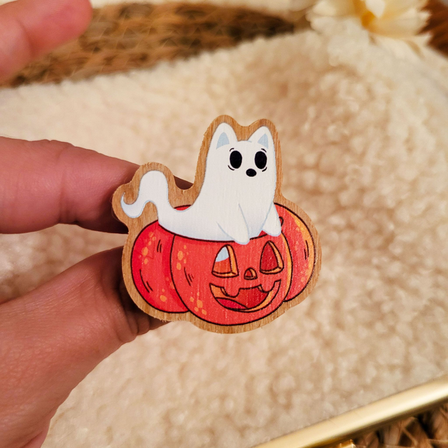 Pin's bois chat fantôme dans une citrouille
