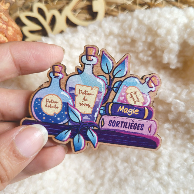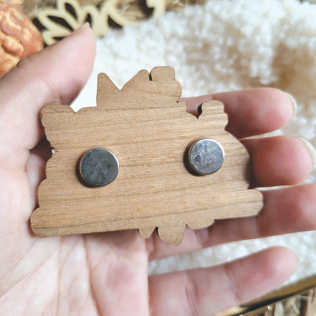 Magnet en bois de cerisier. Taille 6,5cm environ. 2 aimants au dos